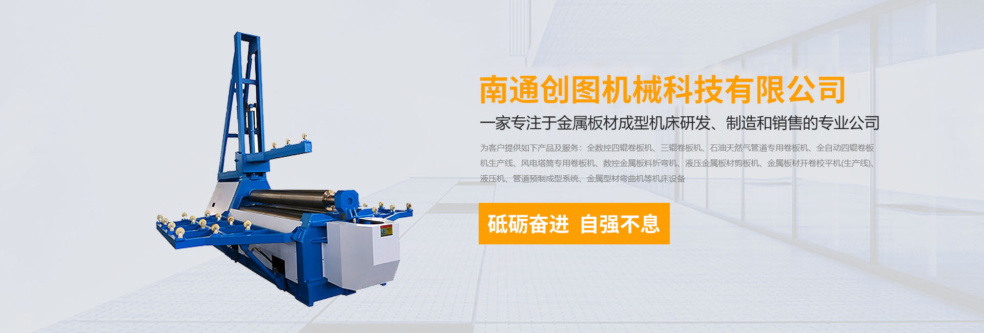 南通創(chuàng)圖機械科技有限公司坐落在長江三角洲北翼--江蘇省南通市海安市,是一家專注于金屬板材成型機床研發(fā)、制造和銷售的專業(yè)公司,公司有著專業(yè)的設計、制造和銷售團隊。南通創(chuàng)圖機械自成立至今,砥礪奮進,自強不息,努力為客戶提供如下產(chǎn)品及服務: